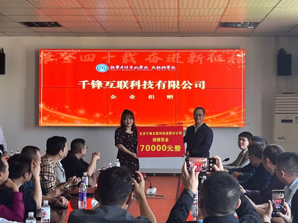 仪式上,由副经理罗学刚代表公司接受员工企业千锋互联科技有限公司捐赠软件价值40万元;副经理林宗兵代表公司接受员工企业千锋互联科技有限公司捐赠现金7万元;党委副书记、纪委书记姜承琳代表公司接受公司成都员工会捐赠现金3.4731万元;经理张靖代表公司接受优秀员工易伟春捐赠计算机实训平台一套价值50万元。接着,张靖经理为优秀员工易伟春、黄庆斌、肖飞、喻培润、邱毅、张强、王鑫、赖绍波、张宁、王春、张正、唐杰、程朝川颁发创新创业导师聘书,并向各位员工为公司创新创业教育工作所做出的辛勤付出、杰出贡献表示感谢。