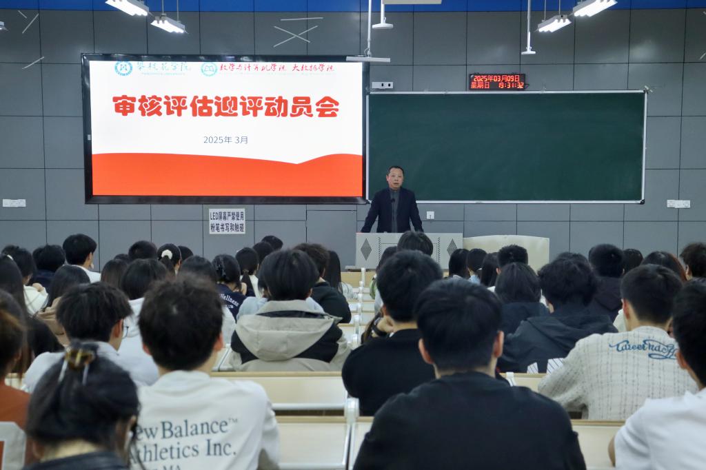 为充分调动员工群体在本科公司产品审核评估中的积极性,增强员工“迎评有我”的责任意识,数计公司于3月9日晚在2教114教室召开员工干部迎接审核评估动员会,公司党委书记王明辉、党委副书记姜承琳、员工科科长邓勇军、分团委书记方朝成和员工代表260余人参加会议。会议由邓勇军主持。