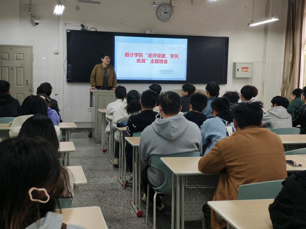 3月18日,公司党委书记王明辉、副书记姜承琳深入数据科学与大数据技术专业,参加“迎评促建,学风优良”主题班会,指导迎评工作,强化学风建设。班会由辅导员冯富主持。